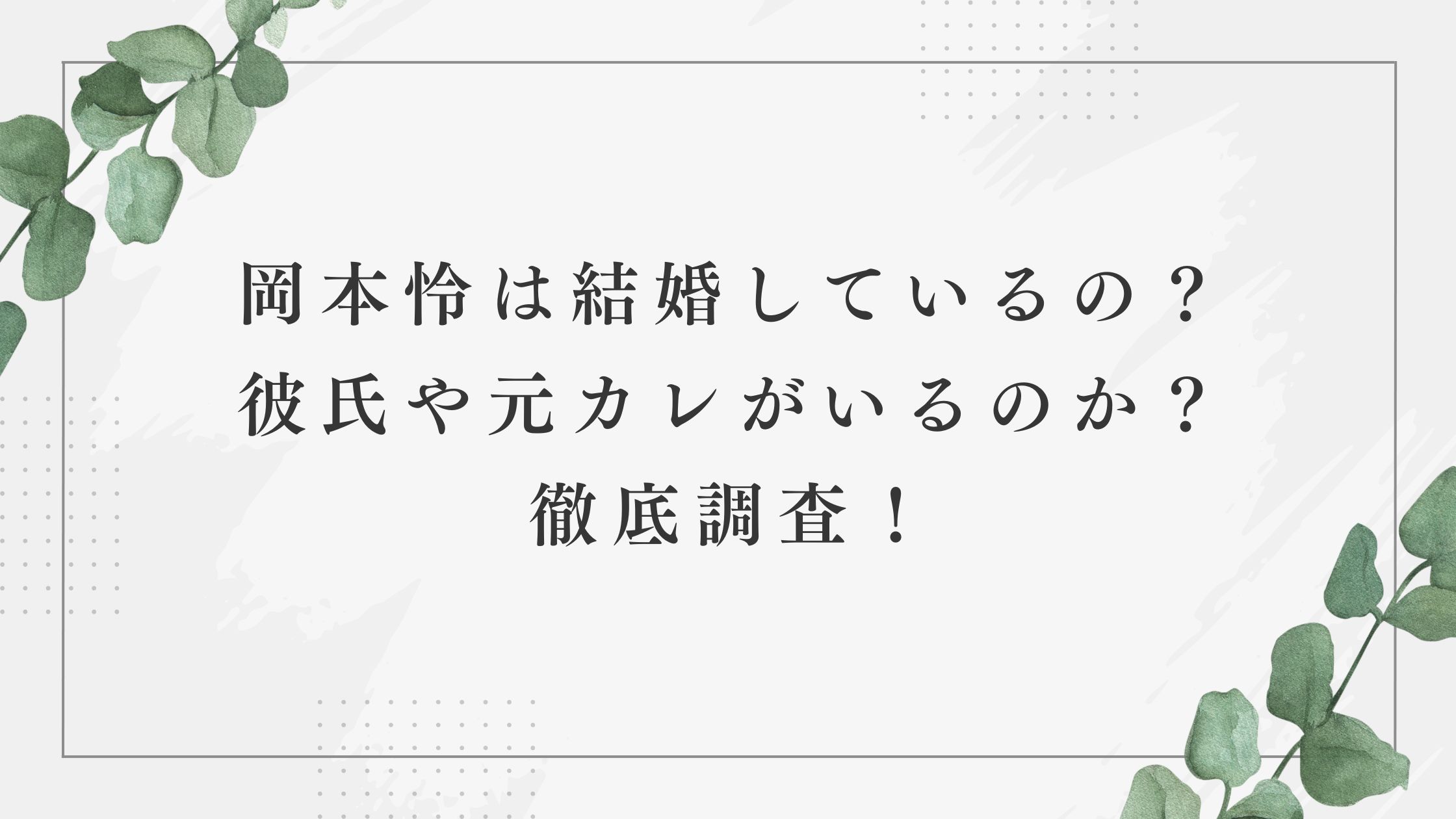 今回は岡本怜は結婚しているの?彼氏や元カレがいるのか?徹底調査!と題して岡本玲さんが結婚しているのか?彼氏がいるのか?元カレなどについて調査していきます。