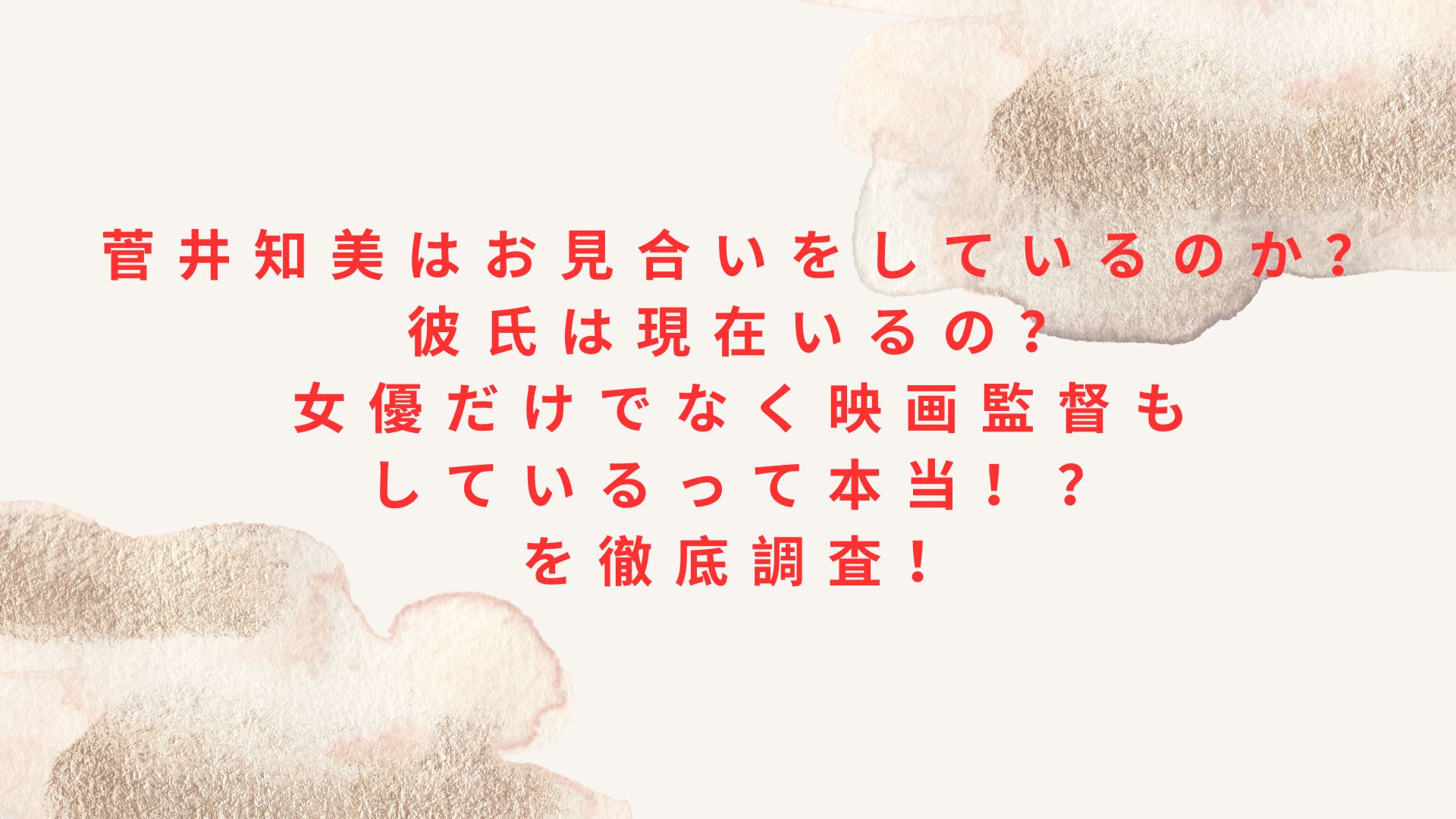 菅井知美はお見合いをしているのか?彼氏は現在いるの?女優だけでなく映画監督もしているって本当!?を徹底調査!と題して、菅井知美さんがお見合いをしているのか?現在彼氏の存在が気になる!映画監督もしているのか?などを紹介していきました。