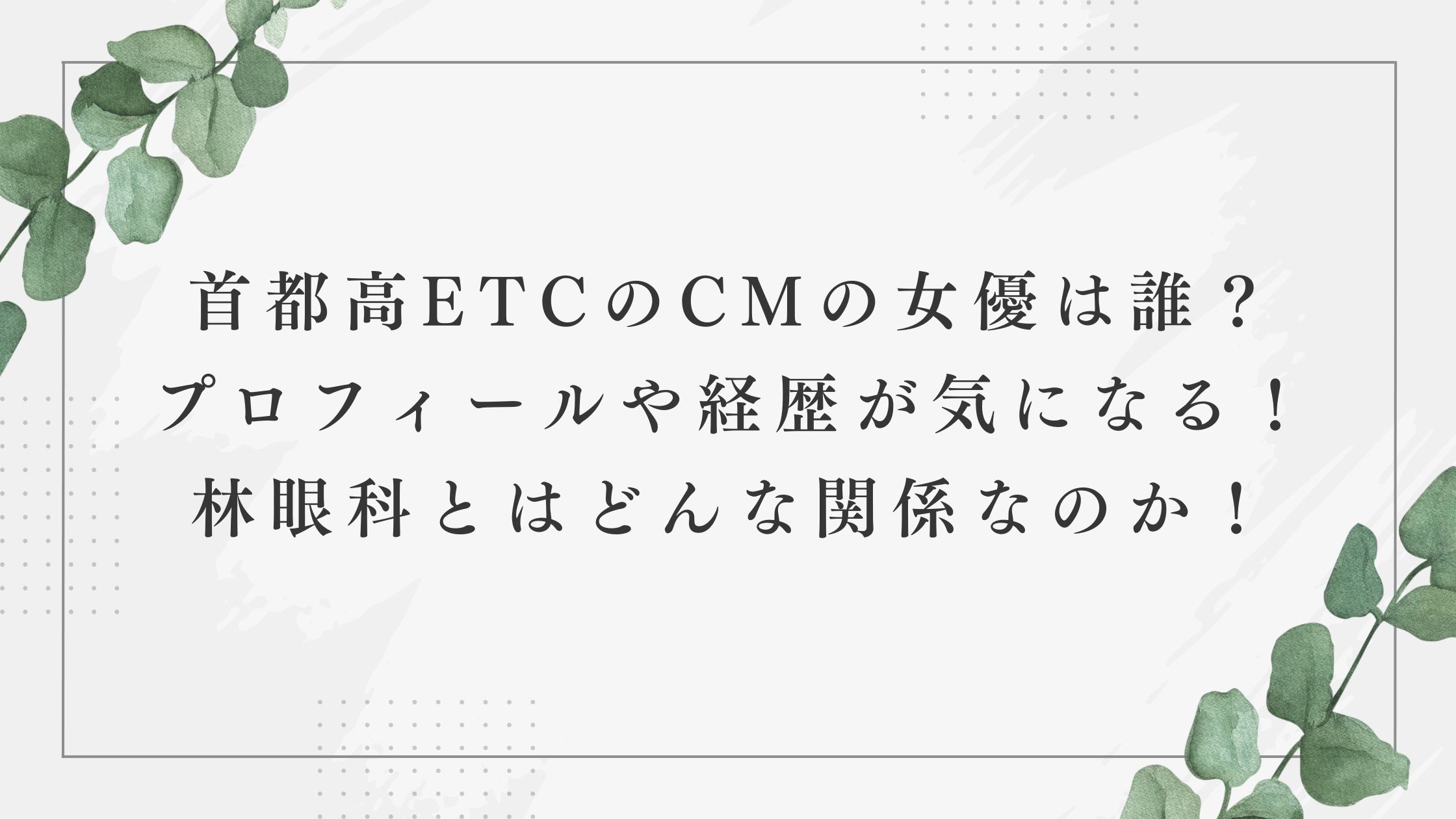 首都高ETCのCMの女優は誰?プロフィールや経歴が気になる!林眼科とはどんな関係なのか!と題して、首都高ETCのCMに出演しているのは誰?プロフィールや経歴、林眼科との関係などについて紹介してきました。