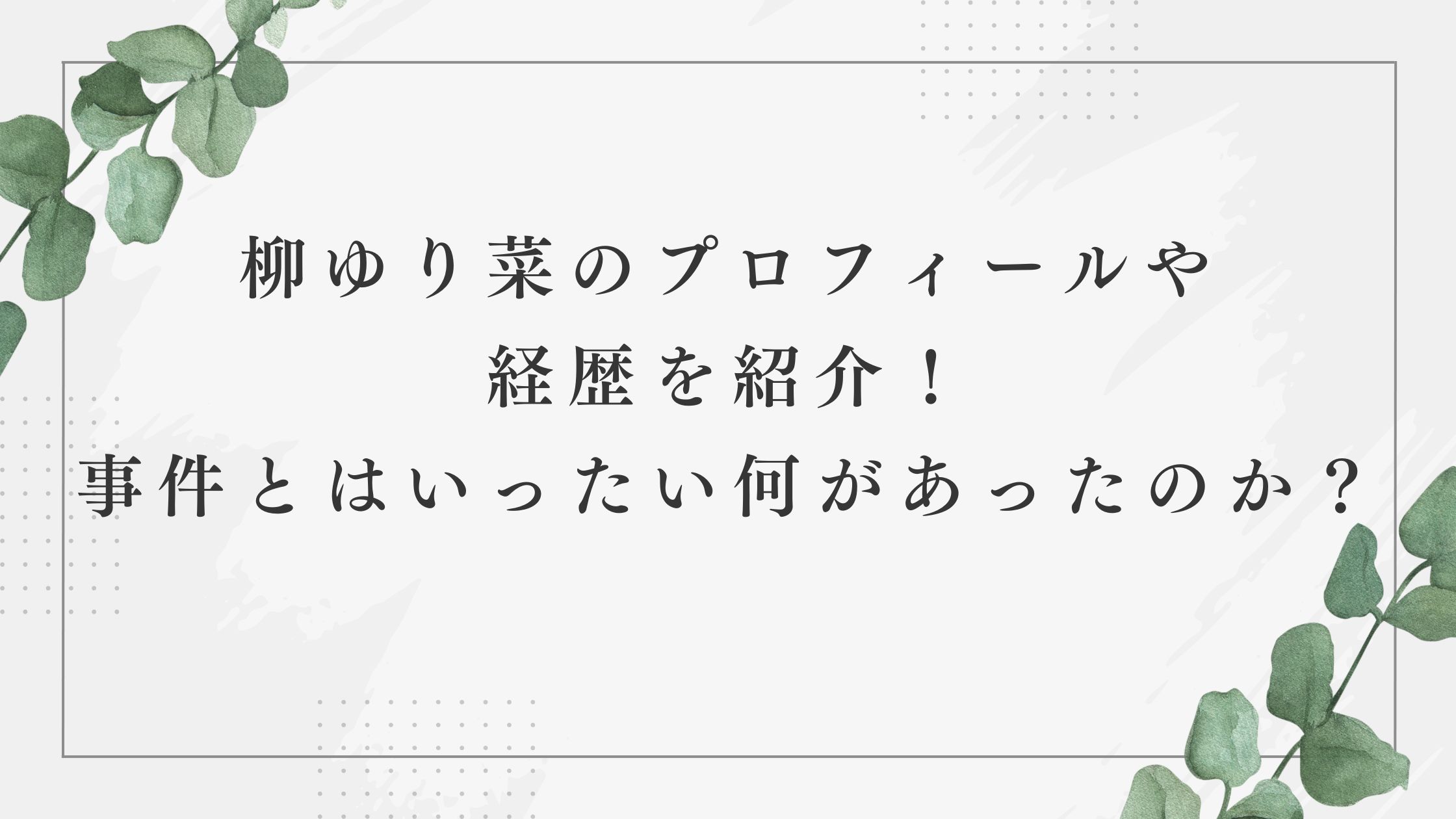 今回は柳ゆり菜のプロフィールや経歴を紹介!事件とはいったい何があったのか?題して、柳ゆり菜さんのプロフィールと経歴、事件の内容などを調査していきます。
